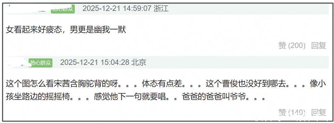 还有网友联想到了儿童摇摇椅,这宣传方式让人出戏了。而宋茜在一边状态看着很疲惫,似乎心情不佳。