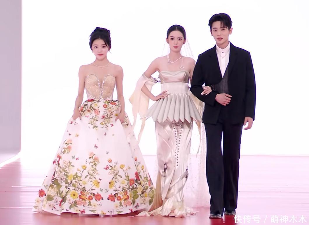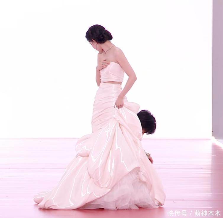 而且红毯T台和真正的红毯材质还不一样,接缝处也不是很平整,怪不得周也的头纱和孟子义的裙摆会被勾住了,又是翘边,又是不同材质拼接,随机勾到路过的明星纱裙似乎是必然的事情。