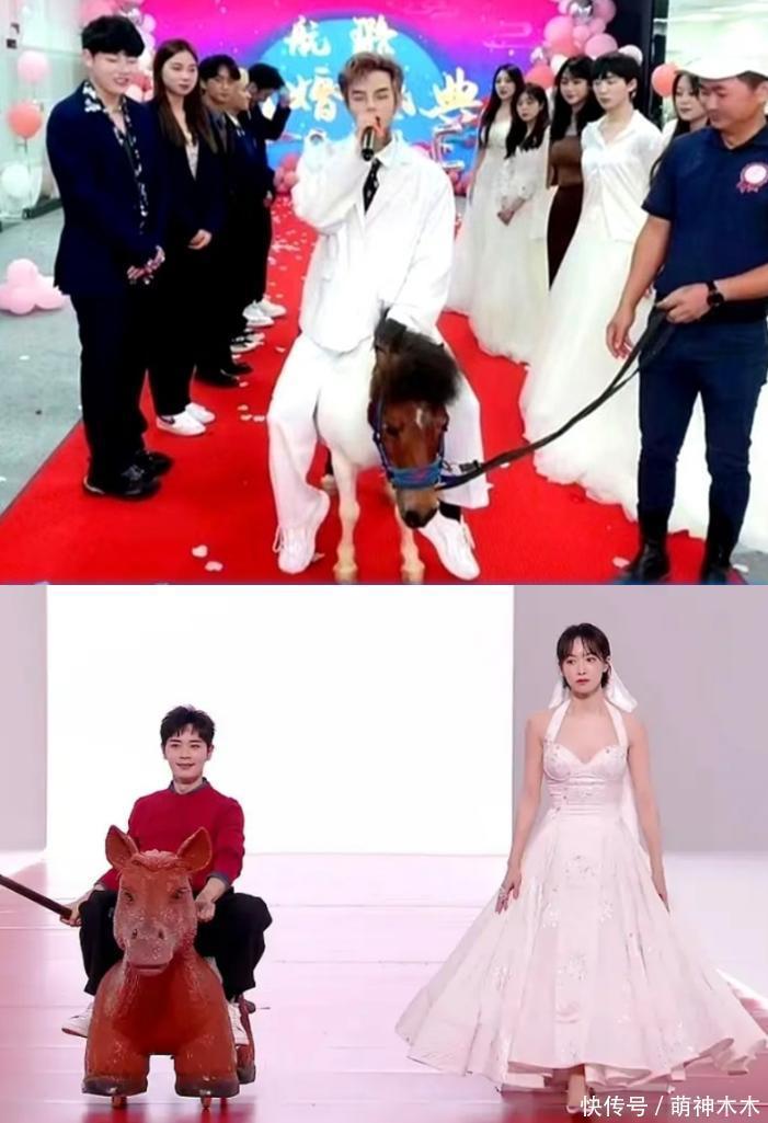 宋茜和曹骏则是另一种“拼”,曹骏骑着一个假马就上场了,但是太矮了反而没有气场,不仅显得不伦不类,还被扒出疑似cos网红殷某航,都是骑小马走红毯。