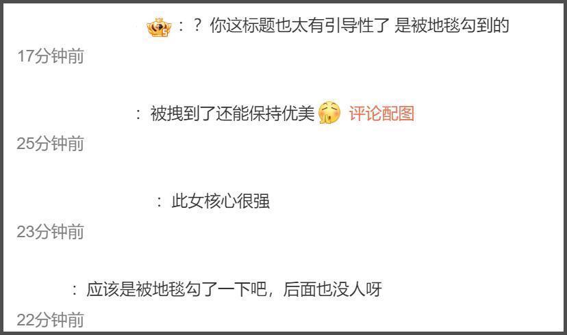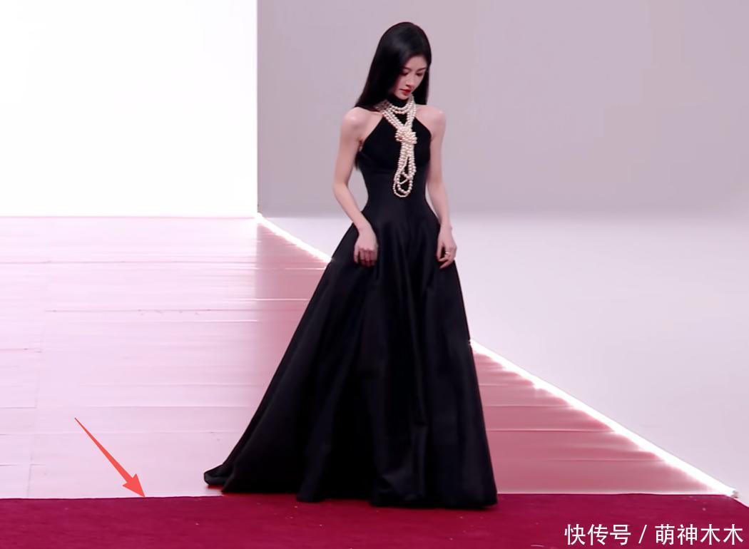 细看还能发现红毯有翘边的地方,也不是很平整,材质也不是地毯的材质,看着还反光。不会吧?难道星光大赏的红毯是胶粘的?