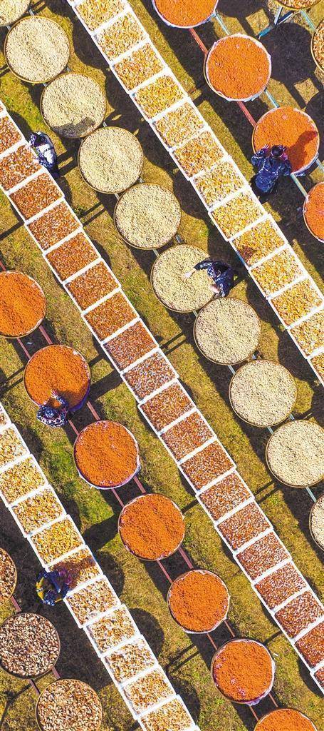 11月27日,江西省宜春市铜鼓县温泉镇禄田村铜乡汇乡村特产手工坊,村民在晾晒红薯、南瓜、生姜等农作物。该县不断延长土特产产业链,助农增收。