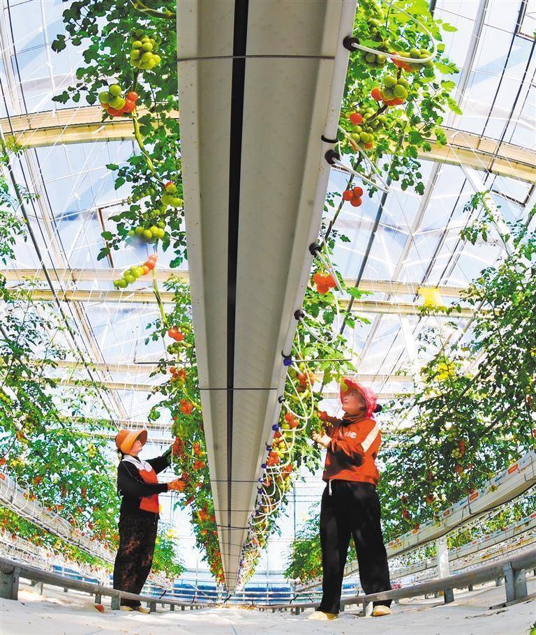 11月25日,江苏省连云港市浦南镇番茄庄园,工作人员在管护小番茄。近年来,当地大力发展以番茄采摘与品尝为主题的绿色休闲基地和品牌番茄周边产业。