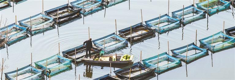 12月16日,蟹农在山东省济宁市微山县和合渔村养蟹基地捕捞螃蟹。当地实施虾蟹混养、蟹鱼混养等生态养殖方式,大闸蟹产业年产值近20亿元。